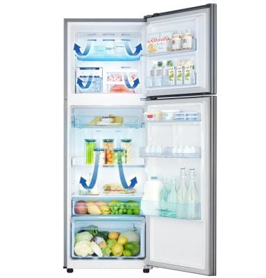 The All-around Cooling system cools the fridge evenly from corner to corner. Cold air is blown out through multiple vents on every shelf level, so it maintains a constant temperature and food stays fresher.