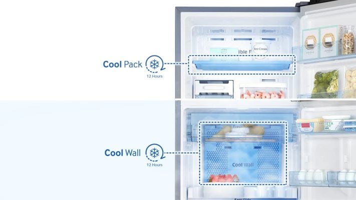 The perfect blackout solution, as it keeps food fresher if the power is cut. A Cool Pack in the freezer and Cool Wall in the fridge keep food items chilled for up to 12 hours during powercut, so it doesn’t spoil.