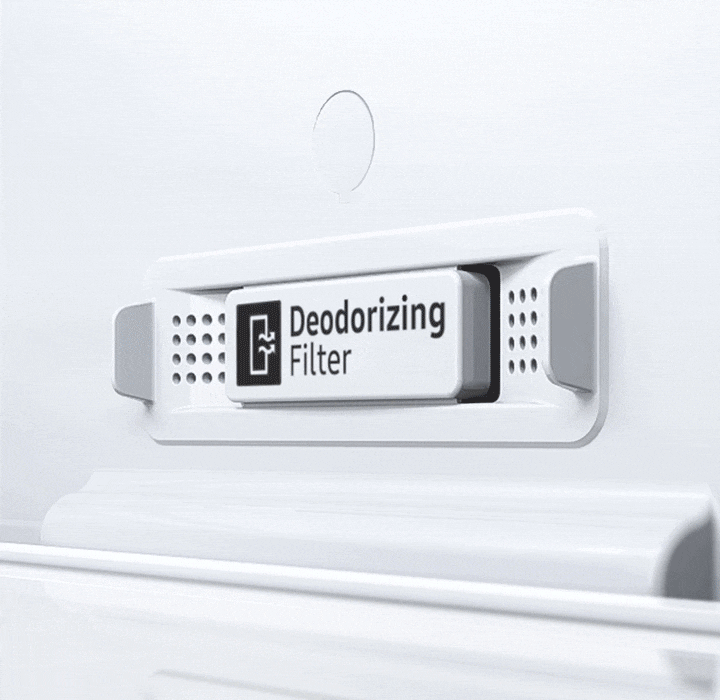 Keep the inside of the refrigerator deodorized and preserve the original flavor and aroma of food for longer. The built-in natural fiber Deodorizing Filter eliminates strong smells as the air is continually passed though activated carbon filters. So you don’t need other odor fighting solutions.