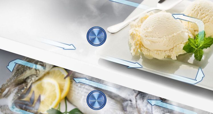 The Twin Cooling Plus system cools the compartments separately to stop unexpected odours spreading from fridge to freezer. So frozen food retains more of its original flavour.