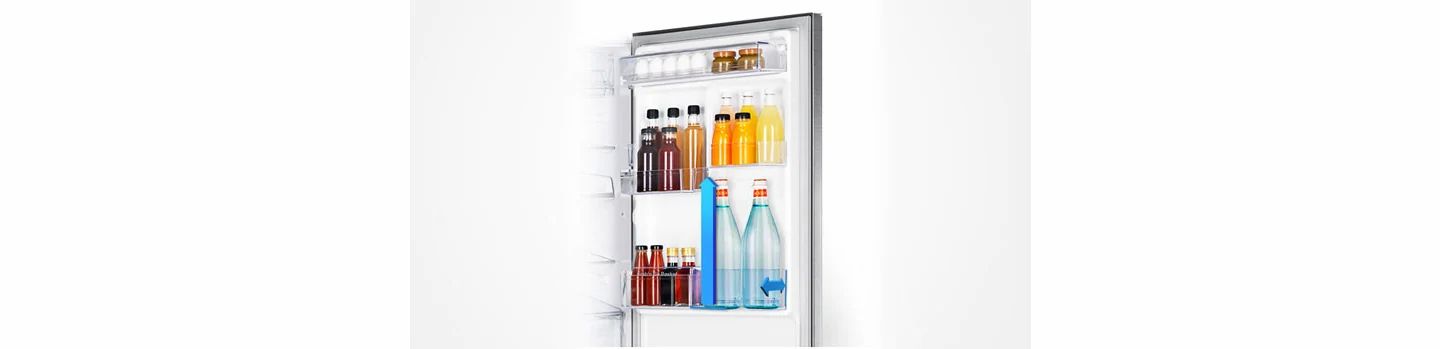Ideal for the thirsty household, the Big Guard is deeper than shelves found in conventional refrigerators. So you can store big containers of milk and juice in the door, along with two rows of beverage cans and bottles. The Big Guard is also great for chilling tall drinks bottles.