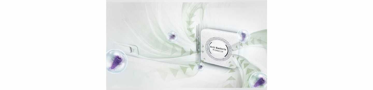 An Anti-Bacterial Protector keeps the fridge clean and hygienic. Air is passed through an Activated Carbon filter, so it is constantly sterilized and deodorized, while an anti-bacterial mesh eliminates bacteria.