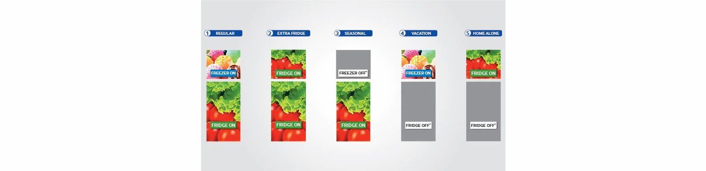 If you are going out on vacation & need to store some food in freezer, simply switch on 'Vacation Mode' and keep only the freezer on & turn off the fridge section.