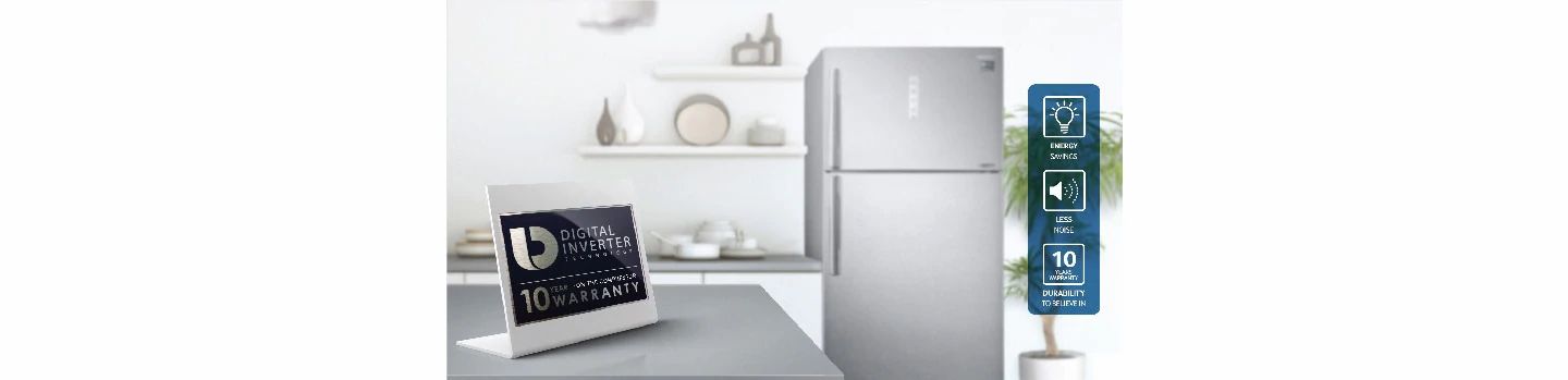 Enjoy the peace of mind that comes with a 10-year warranty on the compressor of Samsung refrigerator powered with Digital Inverter Technology.