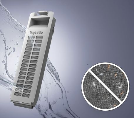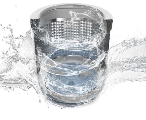 A Magic Dispenser lets you wash with less worrying about residual detergent. It creates a powerful water vortex that dissolves detergent and disperses it evenly before the wash cycle starts.
