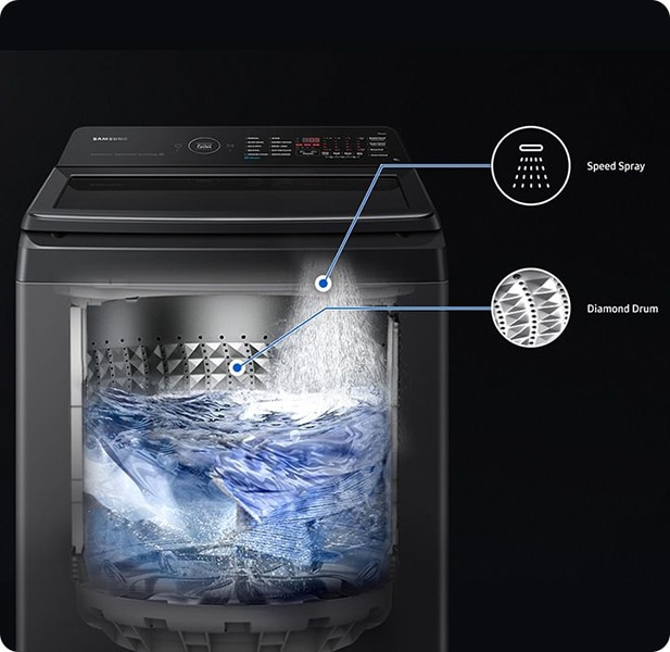 Wash powerfully and more efficiently. Ecobubble with Digital Inverter Technology gets clothes really clean using 73% less energy and 19% less water. BubbleStorm helps detergent penetrate fabric 2.5x faster and gives 20% better fabric care. Dual Storm pulsator creates a vortex of water current that cleans more effectively.