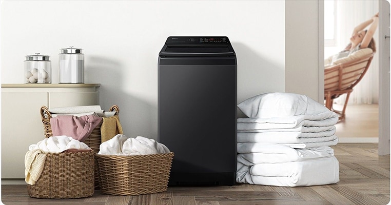 Samsung 8 Kg Top Load Fully Automatic Washing Machine with In built Heater, WA80BG4686BVTL, Black Caviar