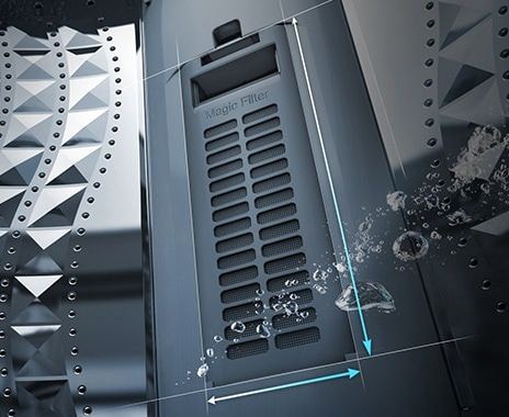 Removes lint even at low water levels and protects the drainage from getting clogged up. The Magic Filter with a dual mesh - at the front and back - effectively gathers the lint, fluff and particles that come out of your laundry. And it is easy to clean the filter as it opens 180 Degree.