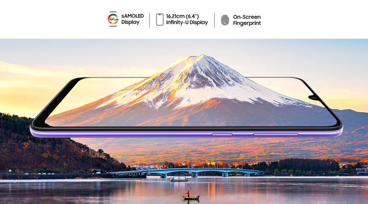 Step up your viewing experience with the new and improved 16.21cm (6.4”) FHD+ sAMOLED Infinity-U Display.