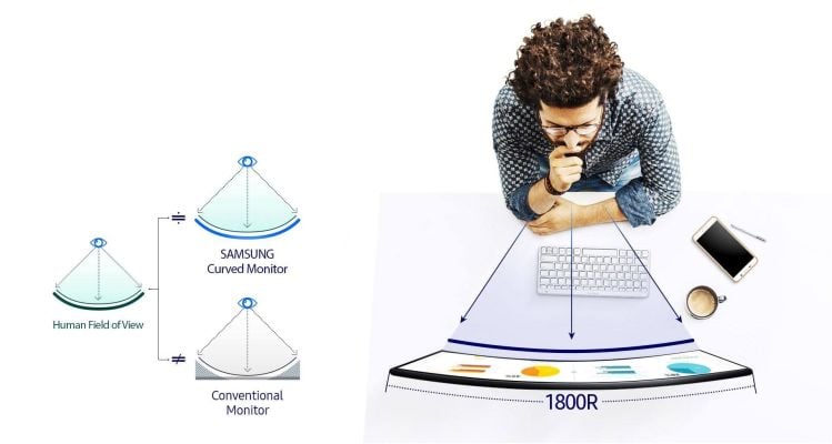 1800R screen curve: the greater curvature of the 1800R screen allows your eyes to track smoothly across the entire display while maintaining a constant viewing distance.