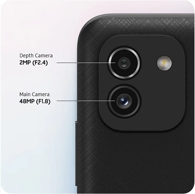 Galaxy A03 features a 48MP Main Camera for amazing everyday photos. You can even adjust the background and foreground focus with the 2MP Depth Camera's Live Focus effects.