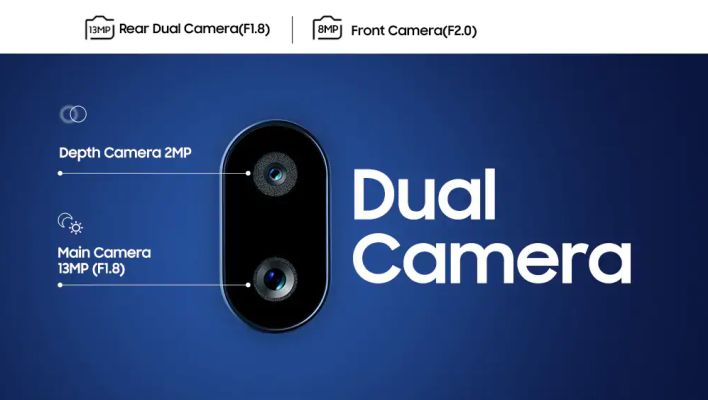 - 13MP + 2MP Rear & 8 MP Selfie camera