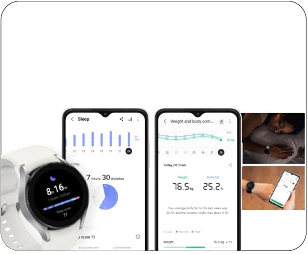 The seamless connectivity that further expands your galaxy Samsung Health(with a Galaxy Watch)