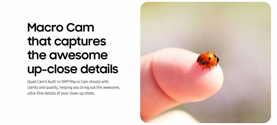Go ultra high-res with a 48MP Main Cam for crisp, clear photos day and night. The 12MP Ultra Wide Cam captures more in the frame with its 123 degree view. Choose the upgraded 5MP Macro Cam for highly refined close-ups, and make sure the subject always stands out with the 5MP Depth Camera’s multiple Live Focus effects.