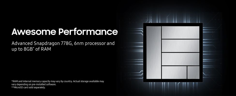 | Processor | 2.4 GHz + 1.8 GHz 6nm Snapdragon SD 778G octa core |