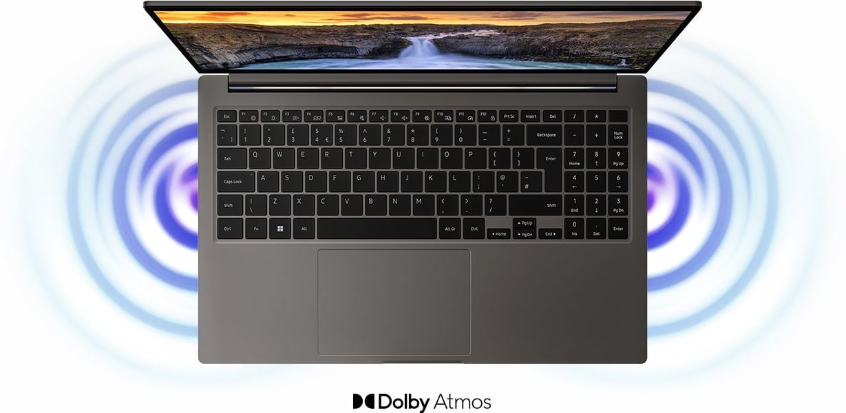 Complete your entertainment experience with the depth and clarity of the dual-speaker audio system. Tuned with Dolby Atmos, the stereo speakers level up your content with stunning sound detail.