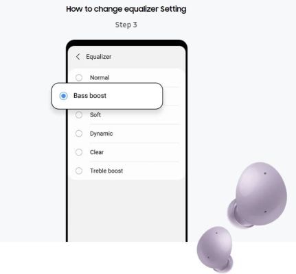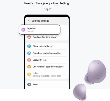 Your every audio experience is tailored to your taste with Galaxy Buds2. With six different equalizer settings to choose from, you'll find your own pitch perfect, vibrant sound that keeps you immersed.