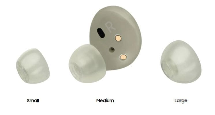 Galaxy Buds2 is lightweight (5g each) and keeps music snug in your ears for even the most active lifestyles. With three sizes of soft, flexible silicon tips you can find a custom fit to get the best ANC experience possible. Find your fit with the "Earbud fit test" menu in the Galaxy Wearable app.