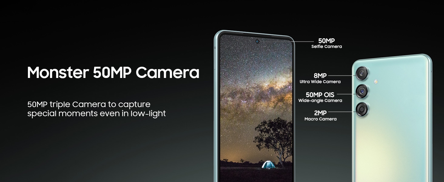 - Camera: 50 MP (Main Camera ) + 8 MP (Ultra-wide Camera) + 2 MP (Macro Camera)/13 MP (Front Camera)