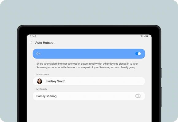 Galaxy Tab A7 syncs your Galaxy smartphone, so you never miss a call or text message when it comes in. So you’re never out of the loop. When you're outside of Wi-Fi, Auto Hotspot has you covered. Securely connect your Galaxy smartphone and tablet to share data easily.