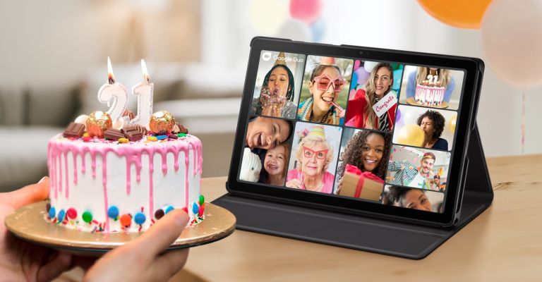 Galaxy Tab A7 with Google Duo brings you closer to all the people you want to be with but can't. Whether you’re checking in on a loved one or sharing a moment with the whole group of friends or keeping in touch with family, Galaxy Tab A7 with Google Duo keeps everyone together even when apart.