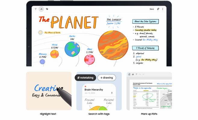 S Pen is a bundle of writing instruments in one. Its natural grip, low latency and impressive pressure sensitivity will make it your go-to for everything from drawing to editing documents. And S Pen won't get misplaced thanks to the tablet's magnetic holder.