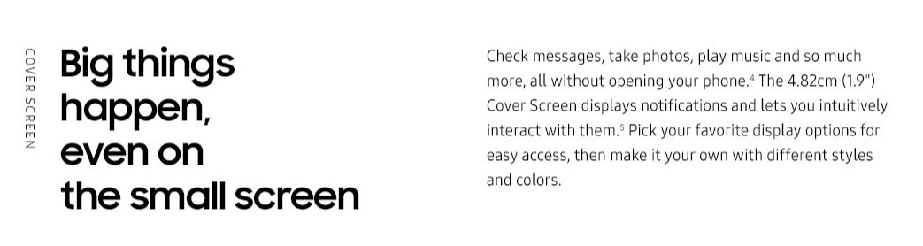 - 4.82cm (1.9 inch) Super AMOLED Cover display with 60Hz refresh rate