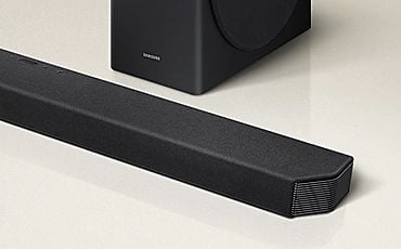 The Soundbar Q950T syncs with your Samsung TV, together creating immersive sound. It combines and enhances sound through the soundbar's front, side, and up-firing speakers as well as the TV's speakers, giving you a new level of acoustic immersion so you can experience content like never before.