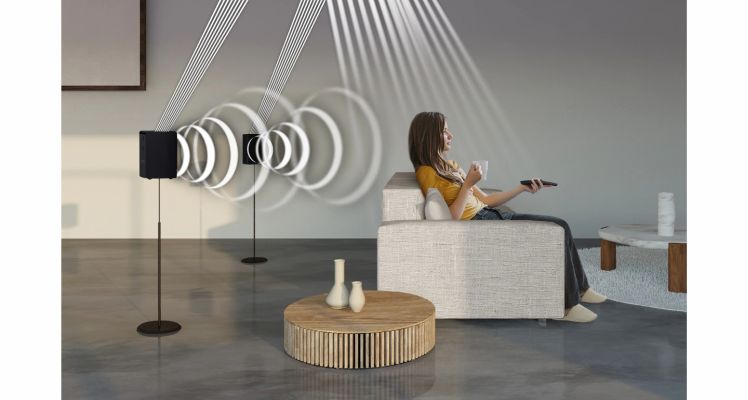 Adding a vertical element for three-dimensional sound, the included Samsung Wireless Rear Speakers with up-firing drivers reflect sound off the ceiling to deliver breathtaking overhead audio — giving you the experience of the theater right in your home.