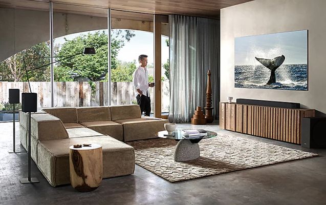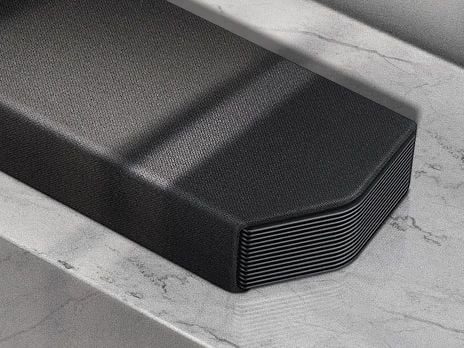 The soundbar's 9 channels, 1 subwoofer channel, and 4 up-firing channels envelope you in sound. With newly added wide speakers on both corners of the soundbar, audio fills the space between it and the rear speakers to enhance your surround sound experience — a great match for your QLED TV.