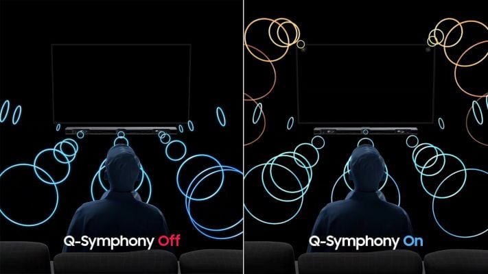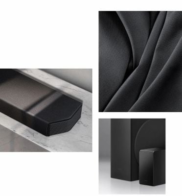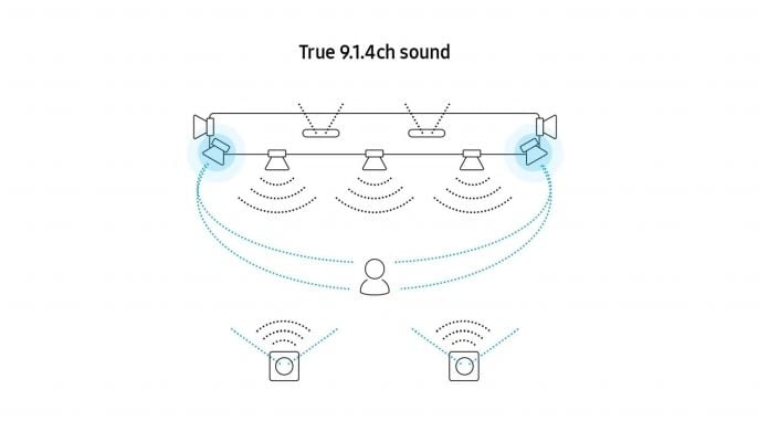 True 9.1.4ch sound- Up-firing rear speakers included- Q-symphony- Dolby Atmos, DTS:X