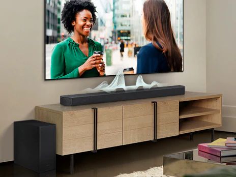 Samsung soundbar analyses the sound signal to automatically deliver optimized sound based on each scene. Adaptive Sound lets you hear voices clearly even on low volumes so even quiet conversations are heard.