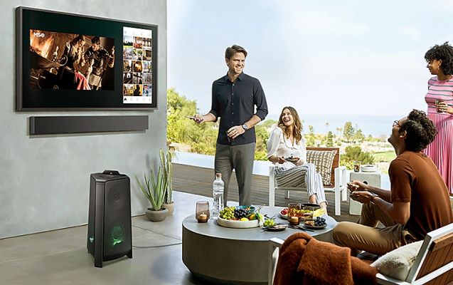Group Play gets your party thumping. Connect multiple Samsung Sound Tower devices for a richer sound experience—with wire and wirelessly.