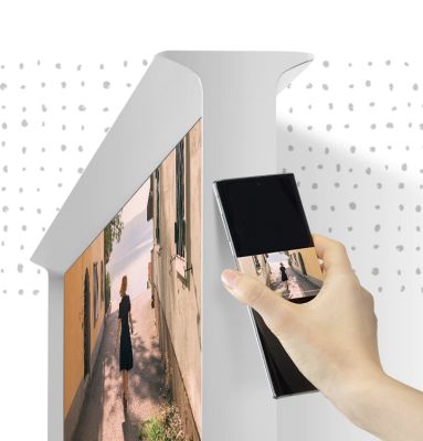 With the TV screen off, place your mobile device on top of The Serif.
