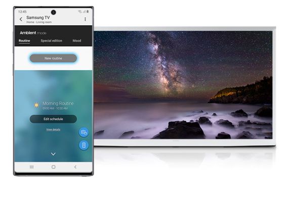 Your screen doesn’t have to be blank when you’re not watching. Specially created by Ronan & Erwan Bouroullec, the new Ambient Mode features two exclusive patterns inspired by the natural world around us a beautiful leaf and a textured fabric and with various colors options to match your mood.