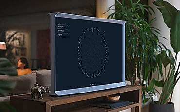 Your screen doesn’t have to be blank when you’re not watching. Specially created by Ronan & Erwan Bouroullec, the new Ambient Mode features two exclusive patterns inspired by the natural world around us a beautiful leaf and a textured fabric and with various colors options to match your mood.