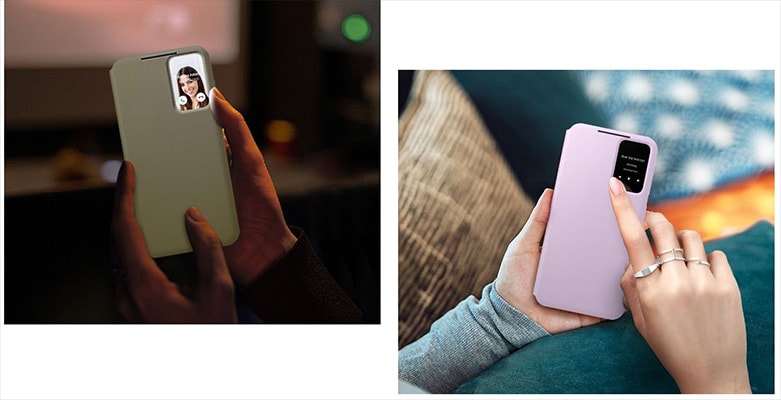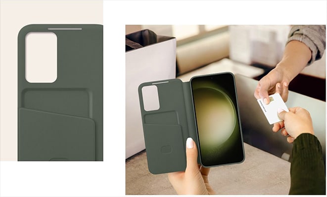 The Smart View Wallet Case lets you access the interactive display of your Galaxy S23 phone without opening the cover. Available in a variety of shades, the case combines protection, style and convenience.