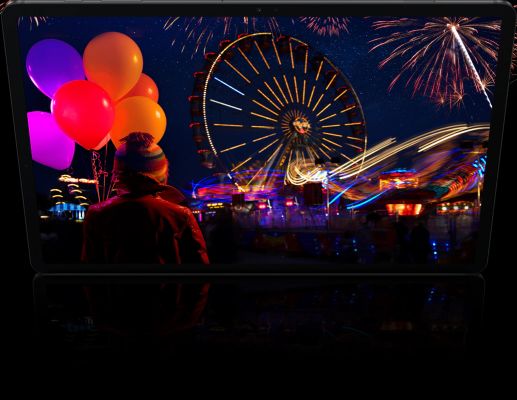 Like the cinema, you get a massive screen made crystal clear with the largest Super AMOLED display and Quad speaker sound by AKG and Dolby Atmos. Unlike the cinema, you can watch for 14 hours straight, because it's built to care for your eyes with the lowest blue light on a tablet display.