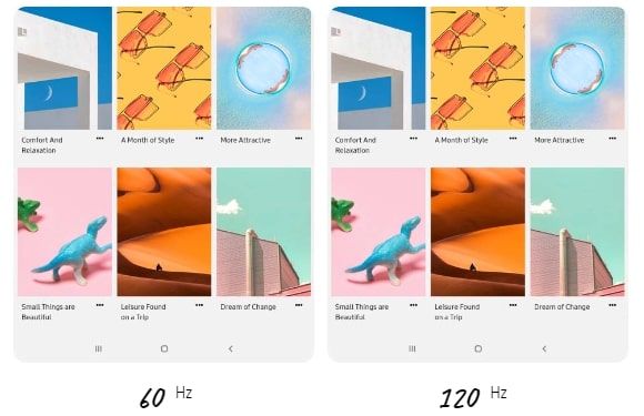 At 120Hz, the responsive display instantly reacts to what's on your screen. It intelligently adjusts the refresh rate based on your content and helps you save battery as you watch and scroll.