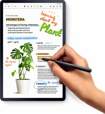 Completely made over for a comfortable, solid grip, S Pen also has ultra low latency so there's little lag between what you think and do. It's S Pen's biggest leap in responsiveness, giving you a true writing experience. Then when you're done, magnetically attach it to the back of your Tab.