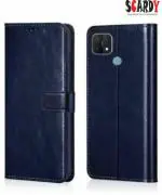 SCARDY OPPO A15 BACK COVER / LEATHER FLIP COVER / BLUE COLOR