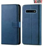 SCARDY SAMSUNG S10 PLUS BACK COVER / LEATHER FLIP COVER / BLUE COLOR