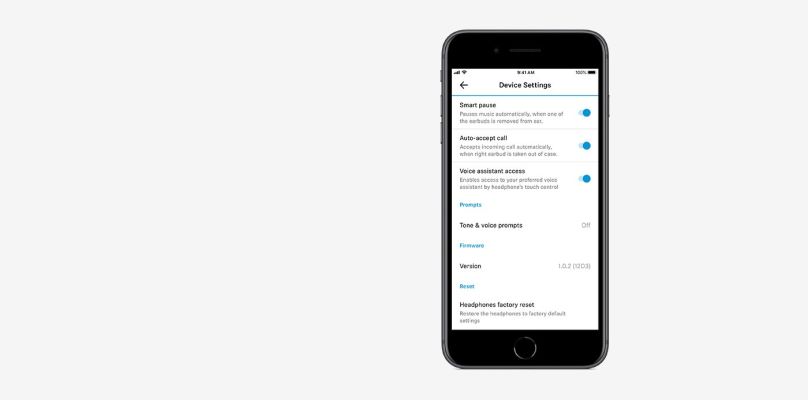 The device settings menu allows you to customize voice prompt or Smart Pause.