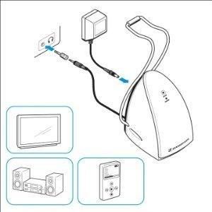The RS 120 RF (radio frequency) wireless headphone lets you enjoy sound without the cumbersome cables associated with traditional headphones. This system features a lightweight on-ear headphone that receives sound from a transmitter base when connected to an analog output of any audio source (like a TV, sound system or computer). The sound quality is Sennheiser; detailed and balanced with good clarity and bass response. These lightweight headphones, featuring a padded headband for comfort are ideal for long listening or TV watching sessions.