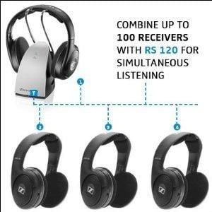 Additional headphones can be added to the RS 120 RF wireless system allowing multiple listeners to enjoy the same sound source (model HRD 120 sold separately).