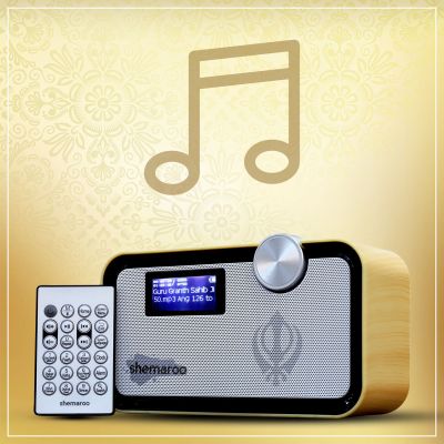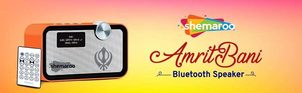Bring home the state of everlasting bliss with Shemaroo Amrit Bani. With over 200 hours of Gurbani content and a collection of 700 plus Shabads, Kirtans, Sahaj Paath, Kathas, Dharmik Geet and Simrans. The most important and attractive feature of Shemaroo Amrit Bani is the complete collection of Shri Guru Granth Sahib Ji. This devotional audio speaker comes power-packed with a 5-watt speaker and a 1200 mAh battery. It is loaded with features like Bluetooth, Aux-Out, USB, TF Card, Alarm, LED display with Clock. With an extended playback time of up to 10 hours, keeping your devotion close and your prayers closer is now easy with Shemaroo Amrit Bani - portable Audio Bluetooth speaker.