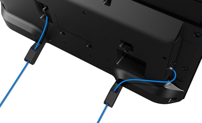 Watch without distraction. A slim, narrow frame with aluminium effect finish keeps you focused on the screen. Cables are hidden within a stand at the back and front for a clean, uncluttered look.