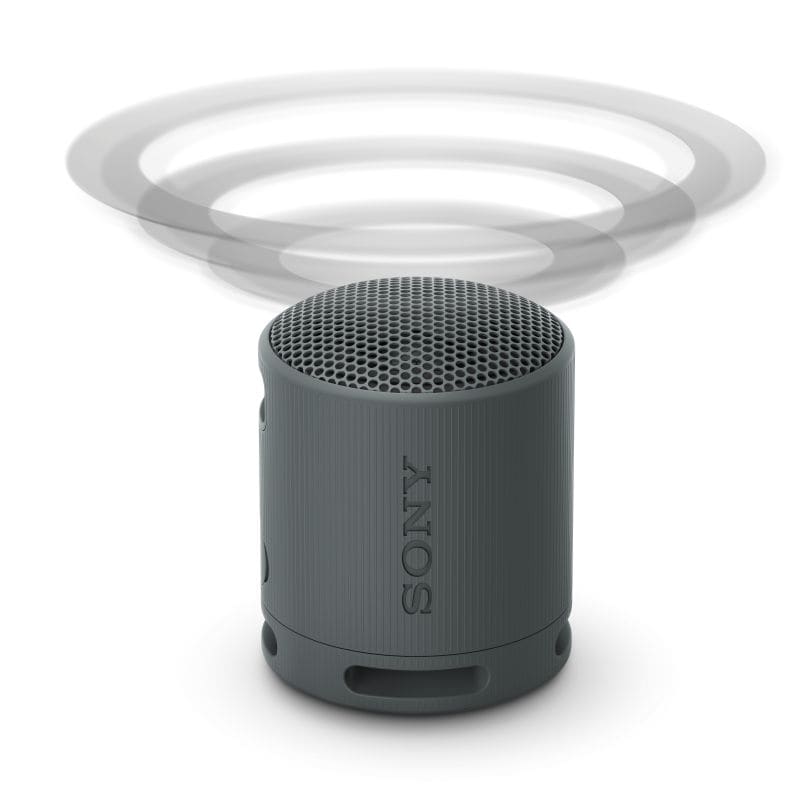With a specially engineered strap, the super-portable XB100 is easy to travel with. But don’t be fooled by the small size—this compact speaker packs plenty of power.