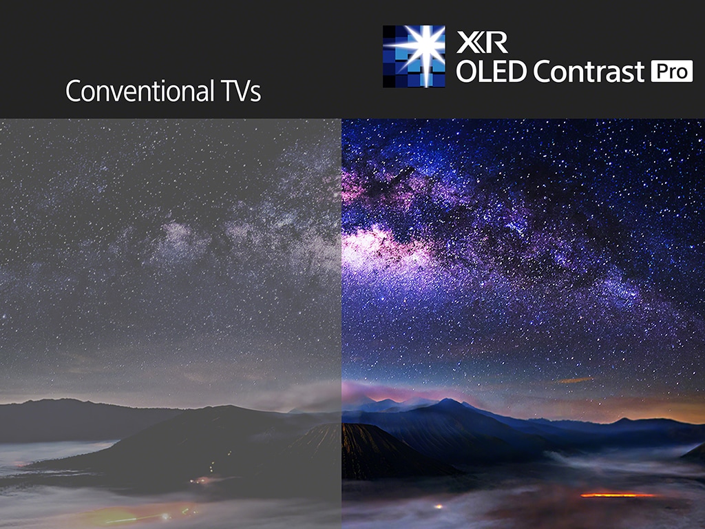 Pairing our OLED panel with XR OLED Contrast Pro, this TV boosts colour and contrast in bright areas so you can enjoy unprecedented pure blacks and peak brightness. Combined with Cognitive Processor XR, it enhances pictures in the same way as your eyes focus so you won't miss a single detail in dazzling light or deep.