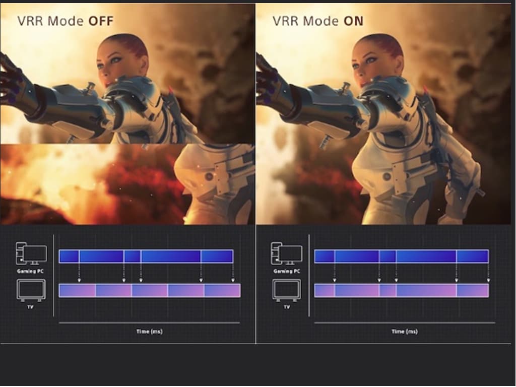 HDMI 2.1 has higher speed enables to realize more resolution, data handling & added features like – 4K 120Hz, VRR & ALLM.